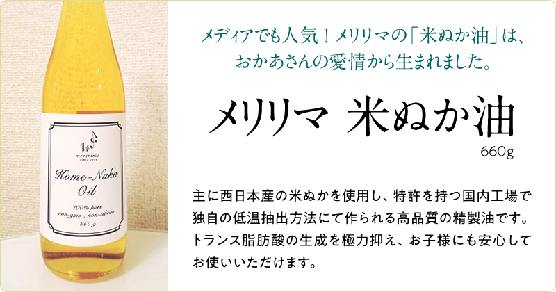 メディアで人気の「メリリマ 米ぬか油」をプレゼント!